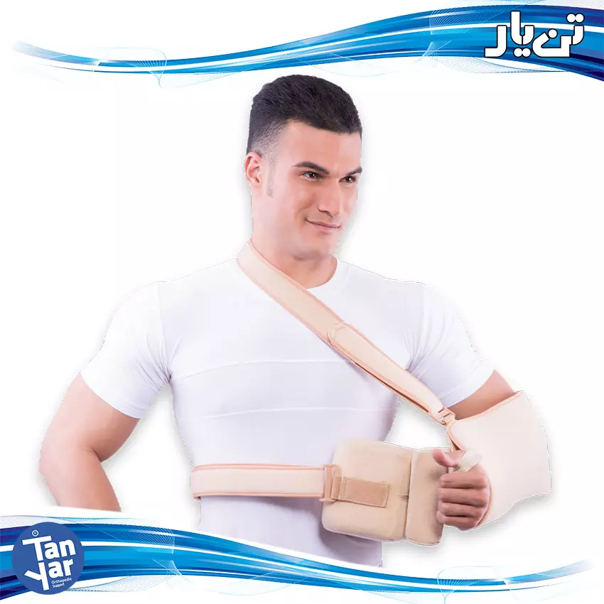 بند را از درون حلقه بگذرانید وطول بند شانه ای را تنظیم کنید تا اینکه مفصل آرنج در زاویه 90درجه استراحت کند سپس بند را محکم کنید.